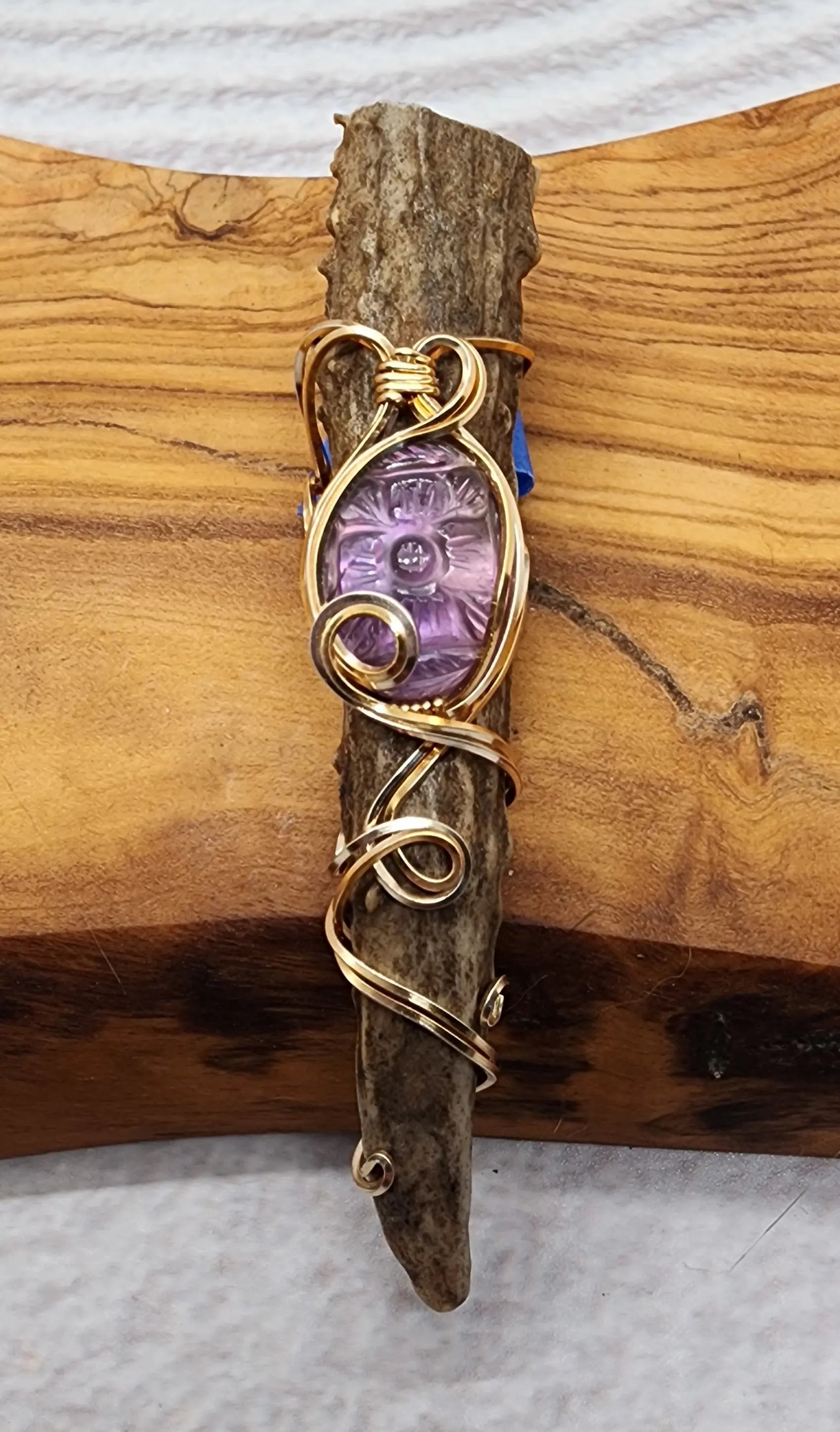 Wire Wrapped Amethyst and Antler Pendant